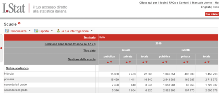 Os dados são relativos ao ano de 2019 e foram divulgados pelo Istat (que é uma espécie de IBGE da Italia). Abaixo a tabela oficial: